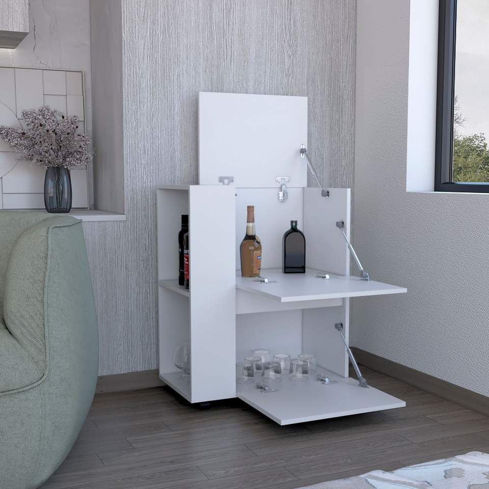 Tully due-Pull giù porta carrello di stoccaggio con scaffali aperti e armadi Bar