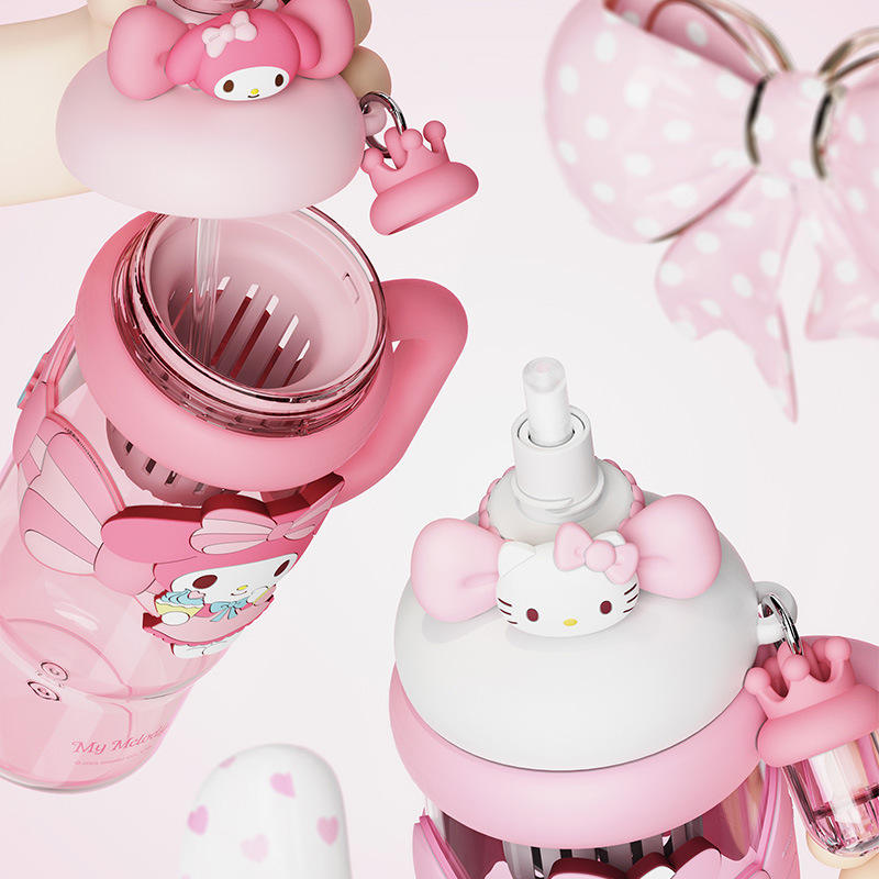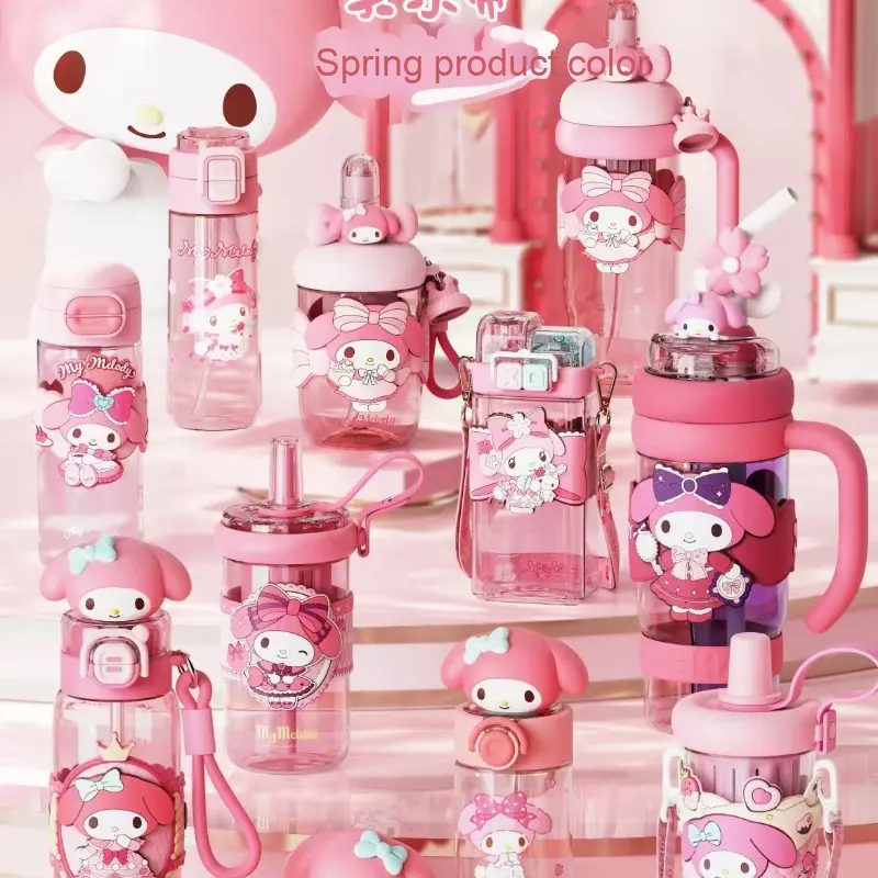 Bicchieri all'ingrosso all'ingrosso ciao gattino cartone animato melodia spazio paglia a prova di perdite bicchiere PP plastica bambino bottiglia d'acqua