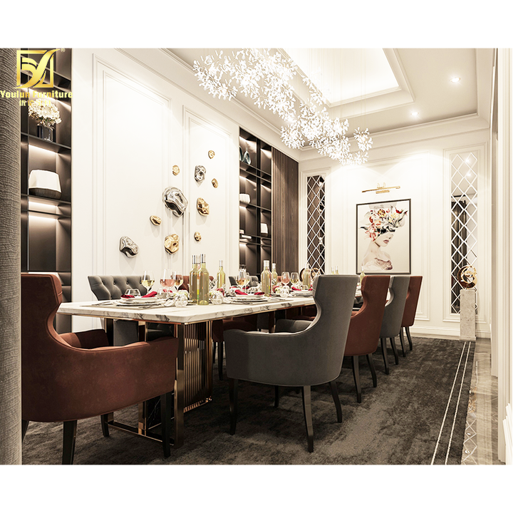Turchia gambe alte in oro naturale base mobili di lusso bianchi cucina unica tavoli da pranzo e sedie in marmo a 10 posti