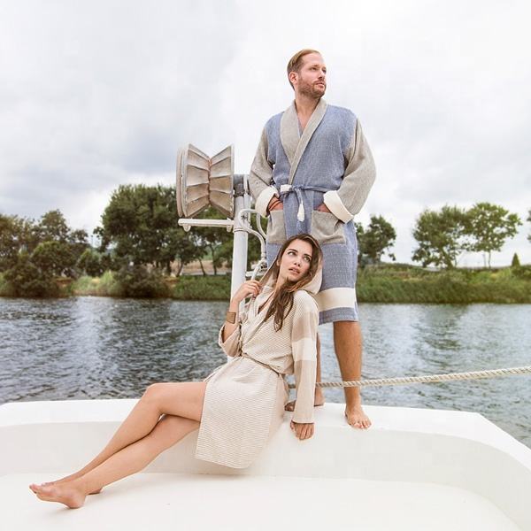 Turkish Elegant Cool Model Bathrobe for Men Women High-Quality Luxury Beach Bath Dress With Two Pastels Colored 100% Cotton