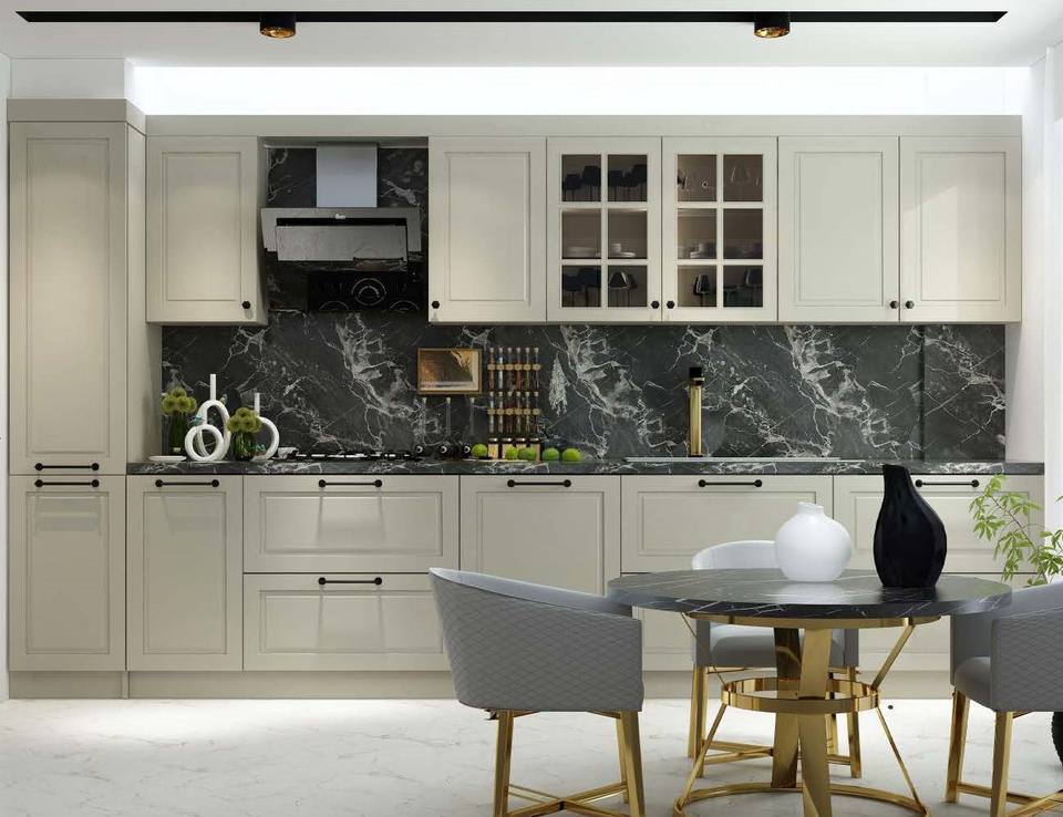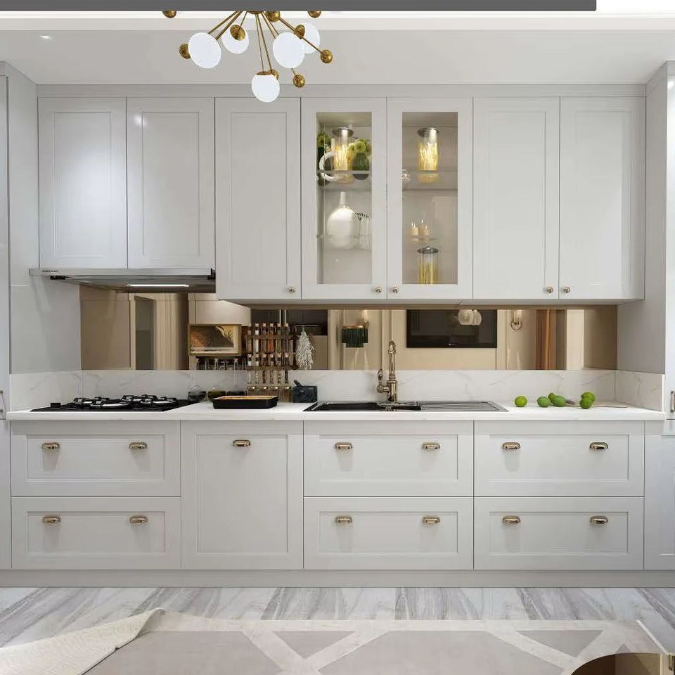 Turkish Manufacturer Shaker Kitchen Cabinets High Gloss Lacquer Transitional Style MDF PVC Membrane Solid Wood Painted Drawer