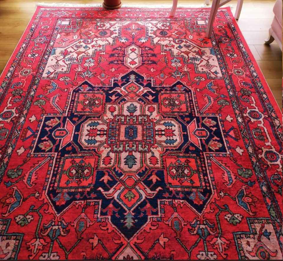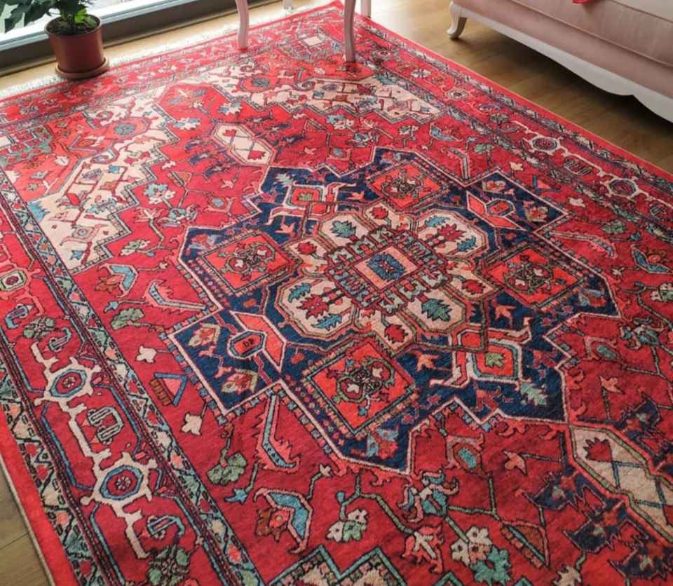 Tappeto vintage turco con motivo orientale rosso, antiscivolo e lavabile, stile boho, per soggiorno e camera da letto