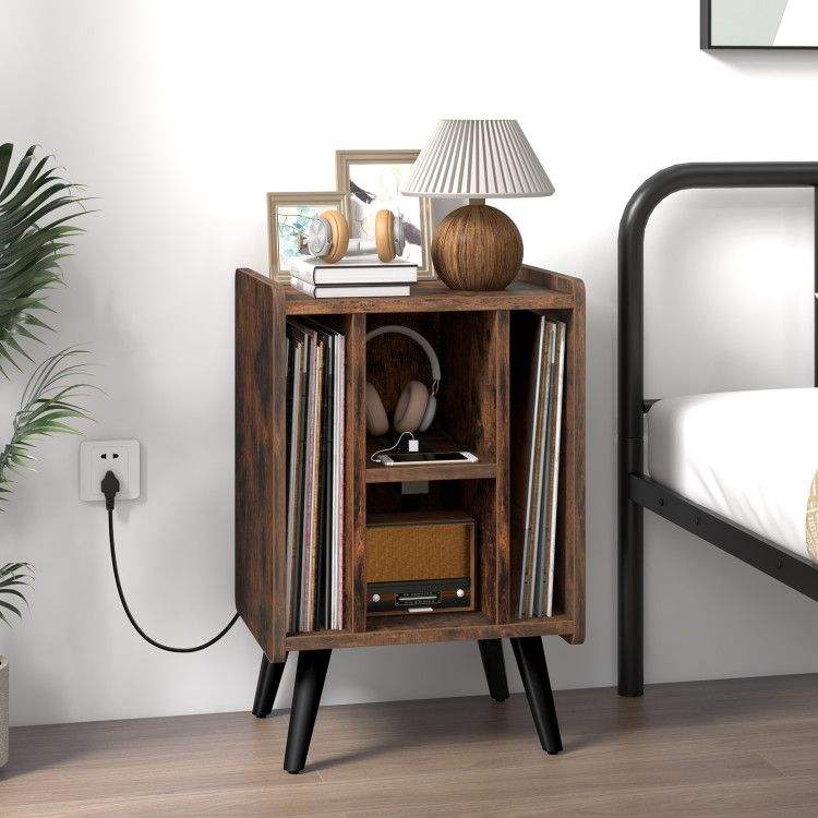 Turntable Stand with 4 Open Shelves for Vinyl Record Storage Model D0100HA5VKW Brown/Gray