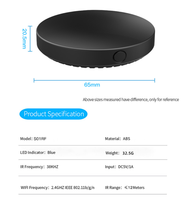 Telecomando Universale Tuya WiFi IR RF 315/433MHz per Condizionatore, TV, TV Box con Interfaccia USB, Compatibile con Alexa e App Smart Life
