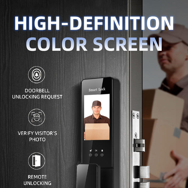 Tuya Wifi Smart Fingerprint 3D Facial Palm Vein High Definition Color Screen Ecognition Door Lock with Camera