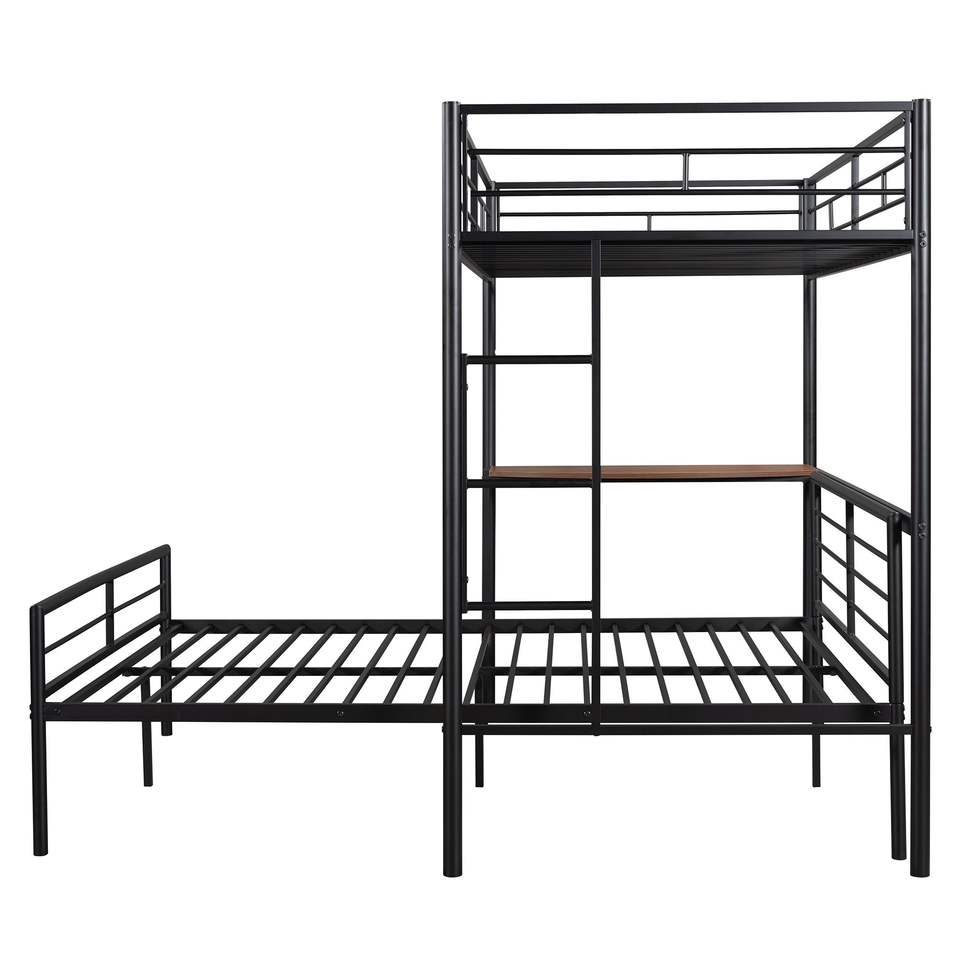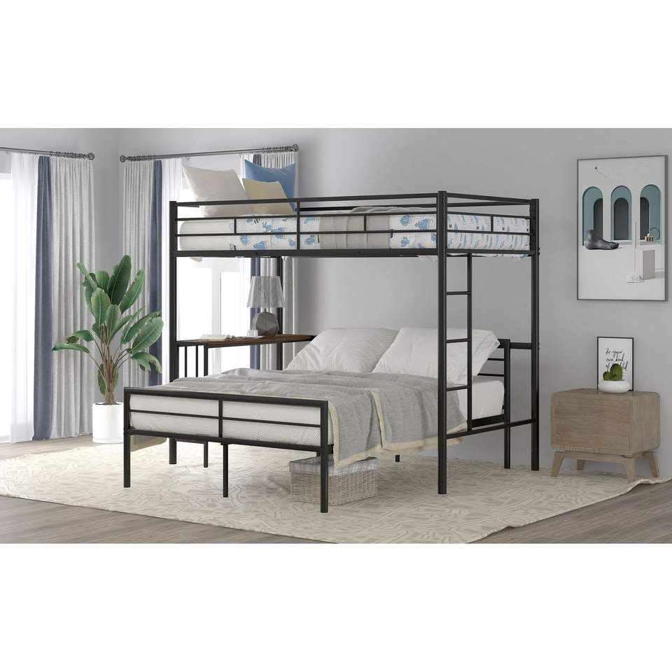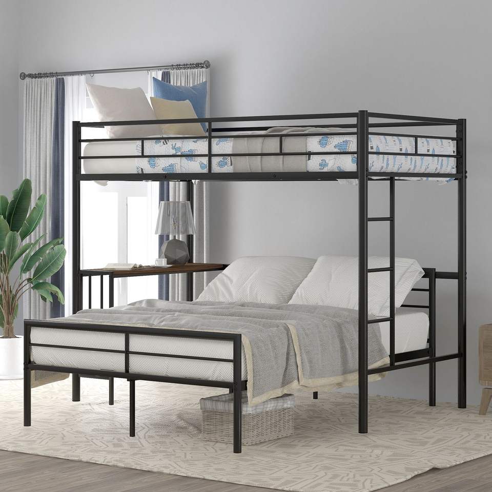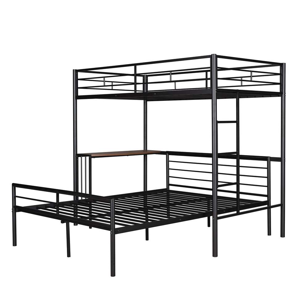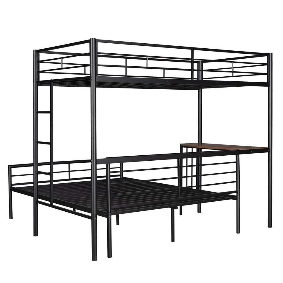 Letto a castello in metallo con scrivania e scaletta, doghe di qualità, colore nero metallizzato, per camera da letto (Vecchio SKU LP000092AAB)