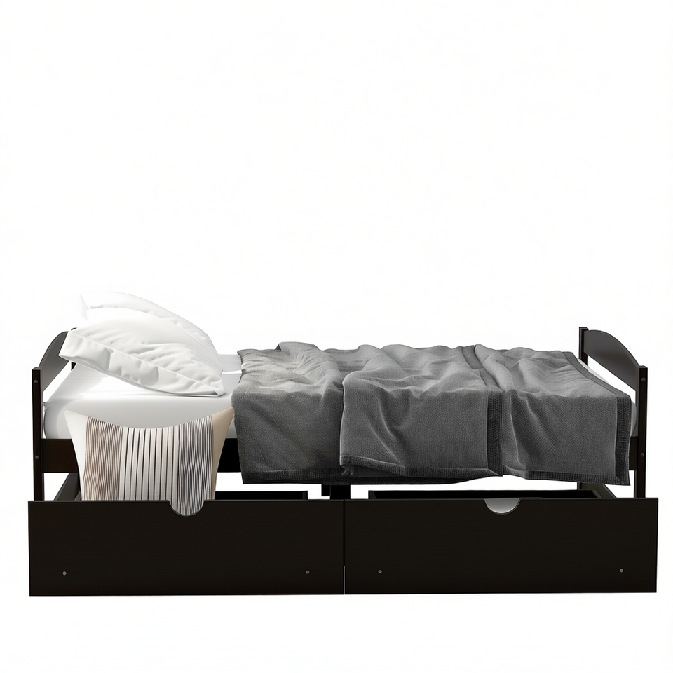 Letto a piattaforma matrimoniale con due cassetti, colore espresso, design minimalista, mobili per camera da letto