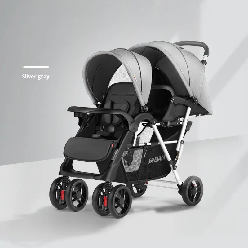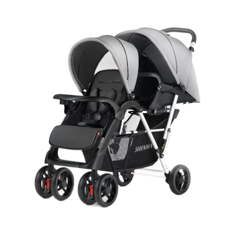 Passeggino Gemellare Leggero Pieghevole con Seduta Reclinabile, Strumento per Passeggiate, Prodotto Transfrontaliero