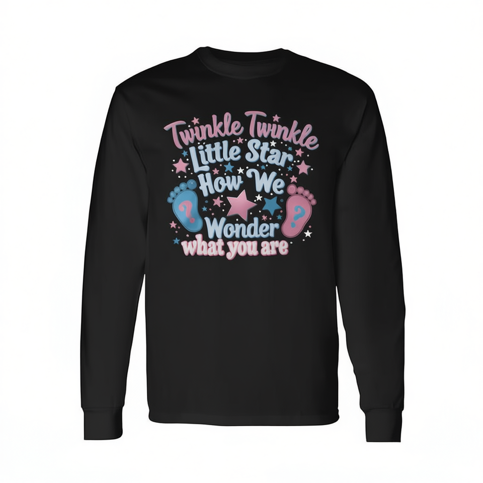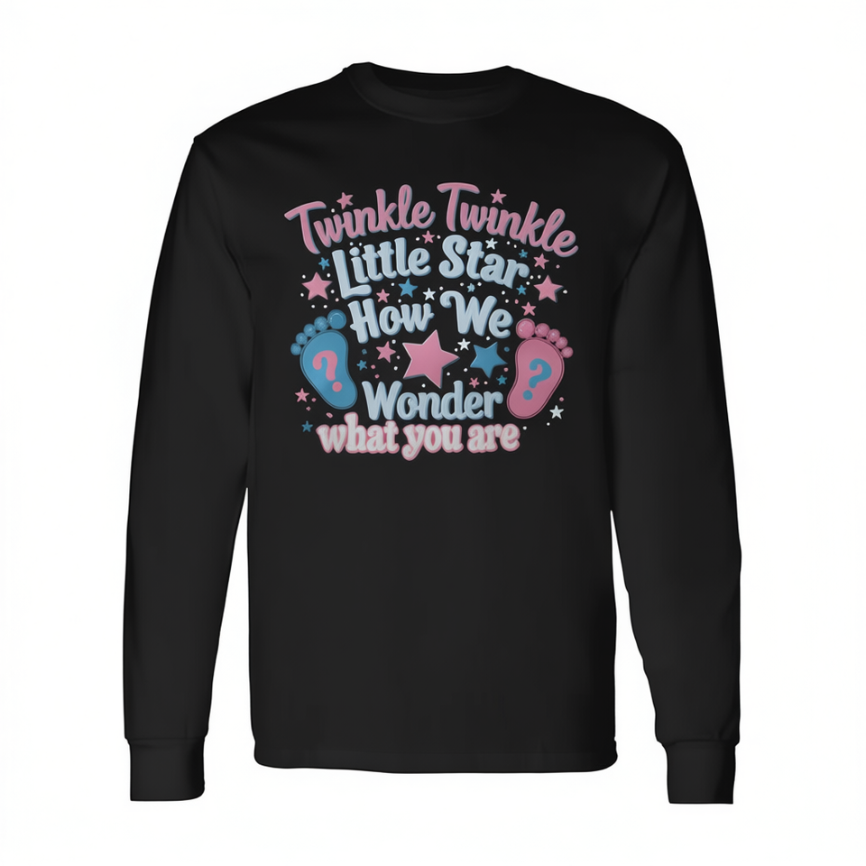 Twinkle Twinkle Little Star Gender Reveal Maglietta a maniche lunghe per adulti, girocollo unisex, stampa digitale
