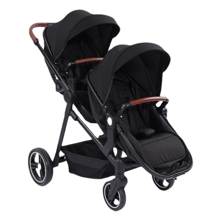 Passeggino Gemellare con Due Sedute e Seggiolino Auto, Passeggino Doppio con Tettuccio Allargato