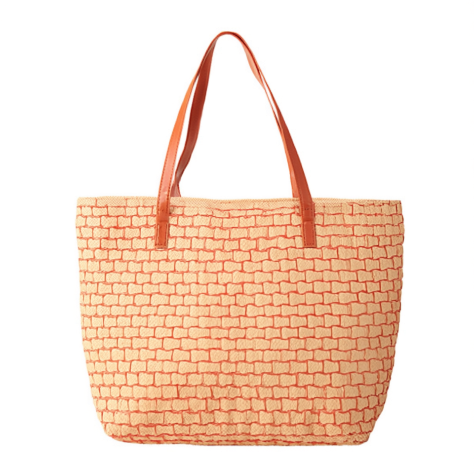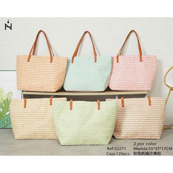 Borsa da spiaggia in carta intrecciata bicolore 55x37x17 cm per donna, borsa da viaggio estiva