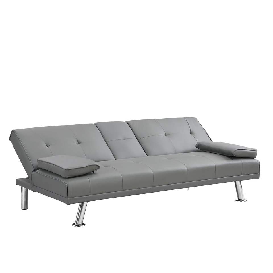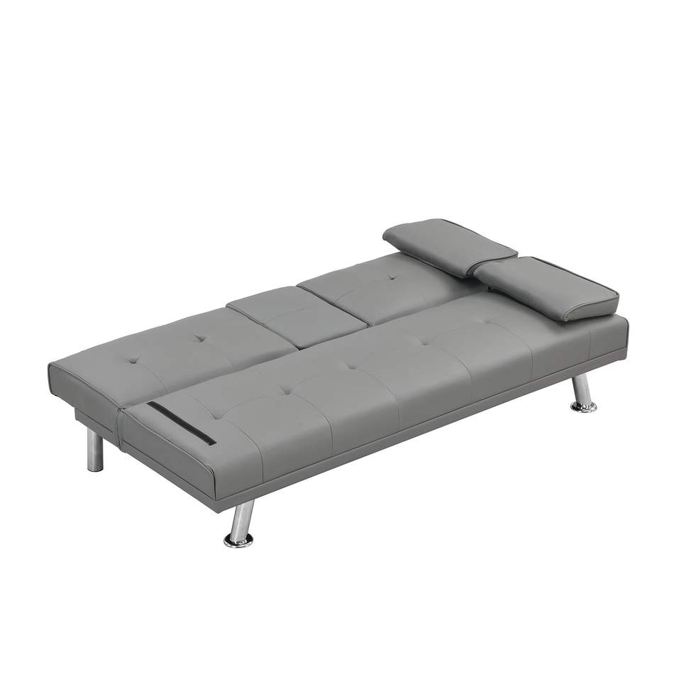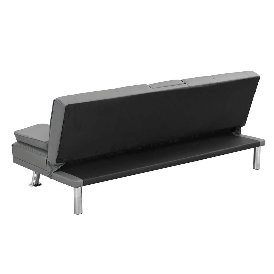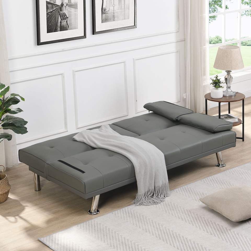 Divano Letto con Due Braccioli, Struttura in Legno, Gambe in Acciaio Inox, Futon in PVC Grigio, Arredamento Elegante per la Casa