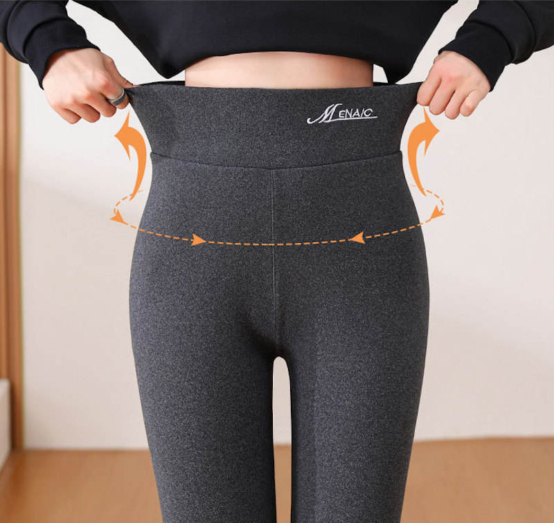 Two Kind of Fleece Embroidery High Waist Women Winter Thermal Leggings Ninth Pants