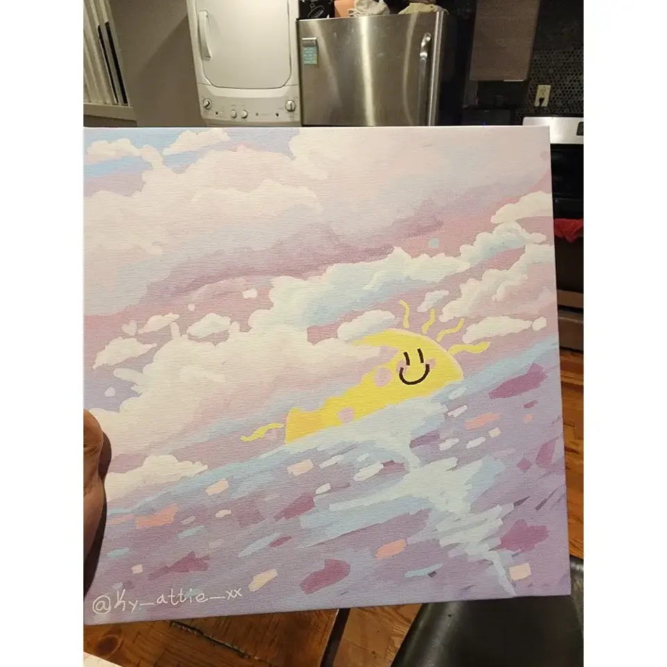 Two Original Art Paintings-Cute Bunny Character & Cheerful Sun in Clouds 12x12 Canvas $150 & $65