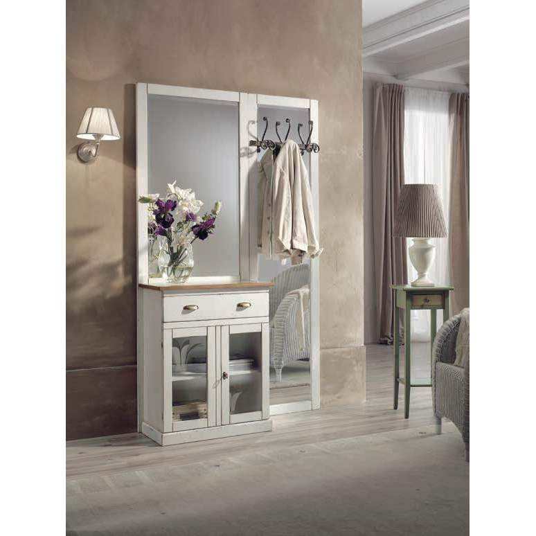 Appendiabiti Mobile da Ingresso a Due Pannelli con Specchio e 1 Credenza a Leggibilità e Visibilità Migliorate