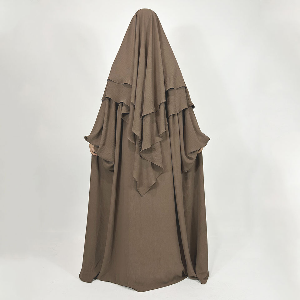 Completo Due Pezzi Abaya Modesta con Khimar in Crepe di Alta Qualità a Doppio Strato Tinta Unita Abbigliamento Islamico all'Ingrosso Taglie Forti Set da Preghiera