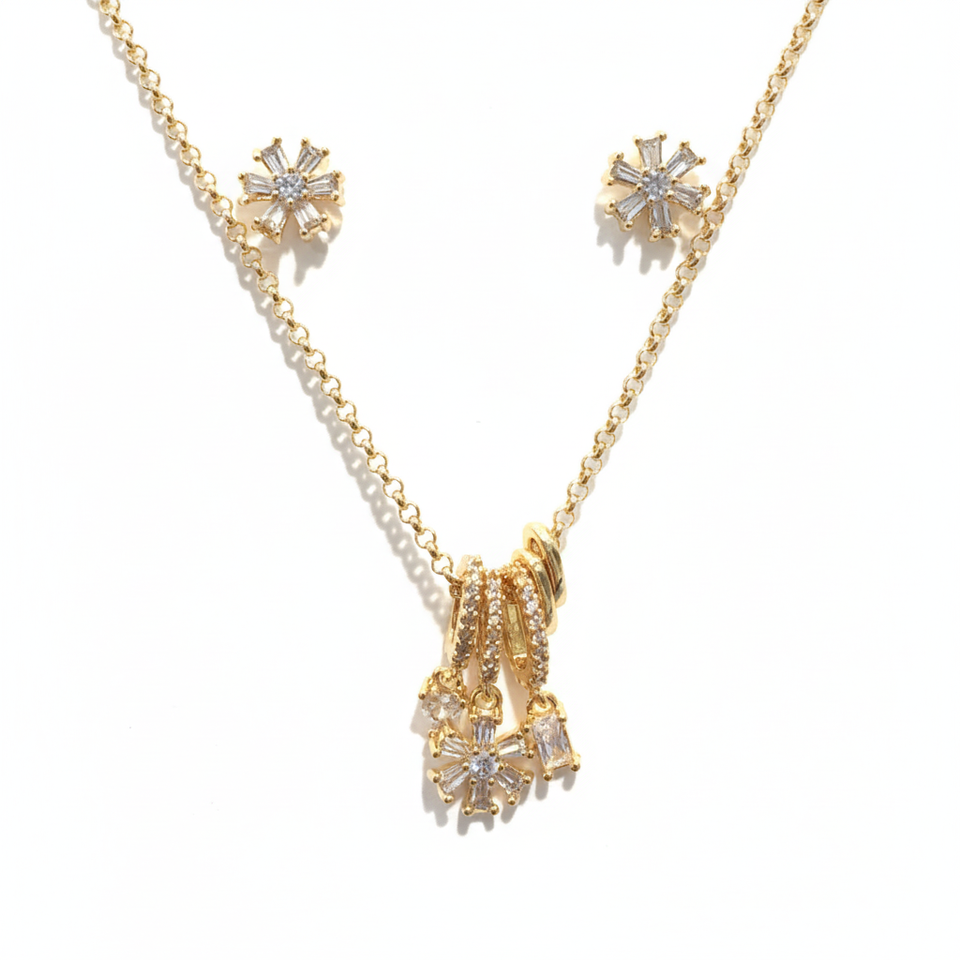 Due pezzi semplice di alta qualità in lega di gioielli Set oro placcato orecchini collana zircone per le donne alla moda ogni giorno indossare occasioni regalo