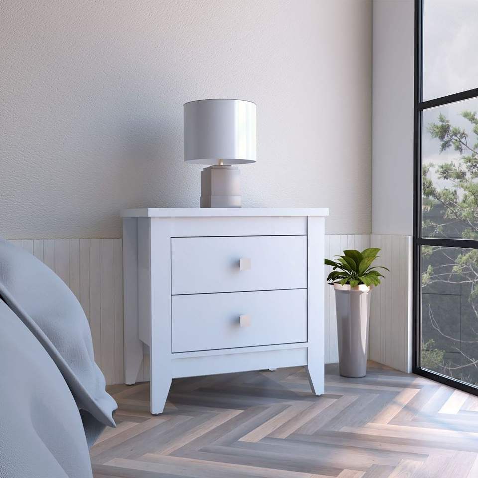 Comodino a due scaffali con finitura bianca a quattro gambe-più di un semplice comodino!