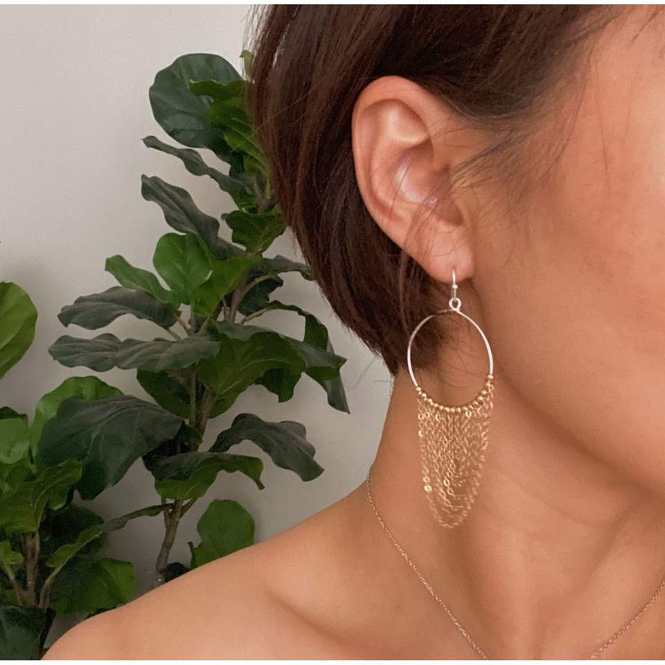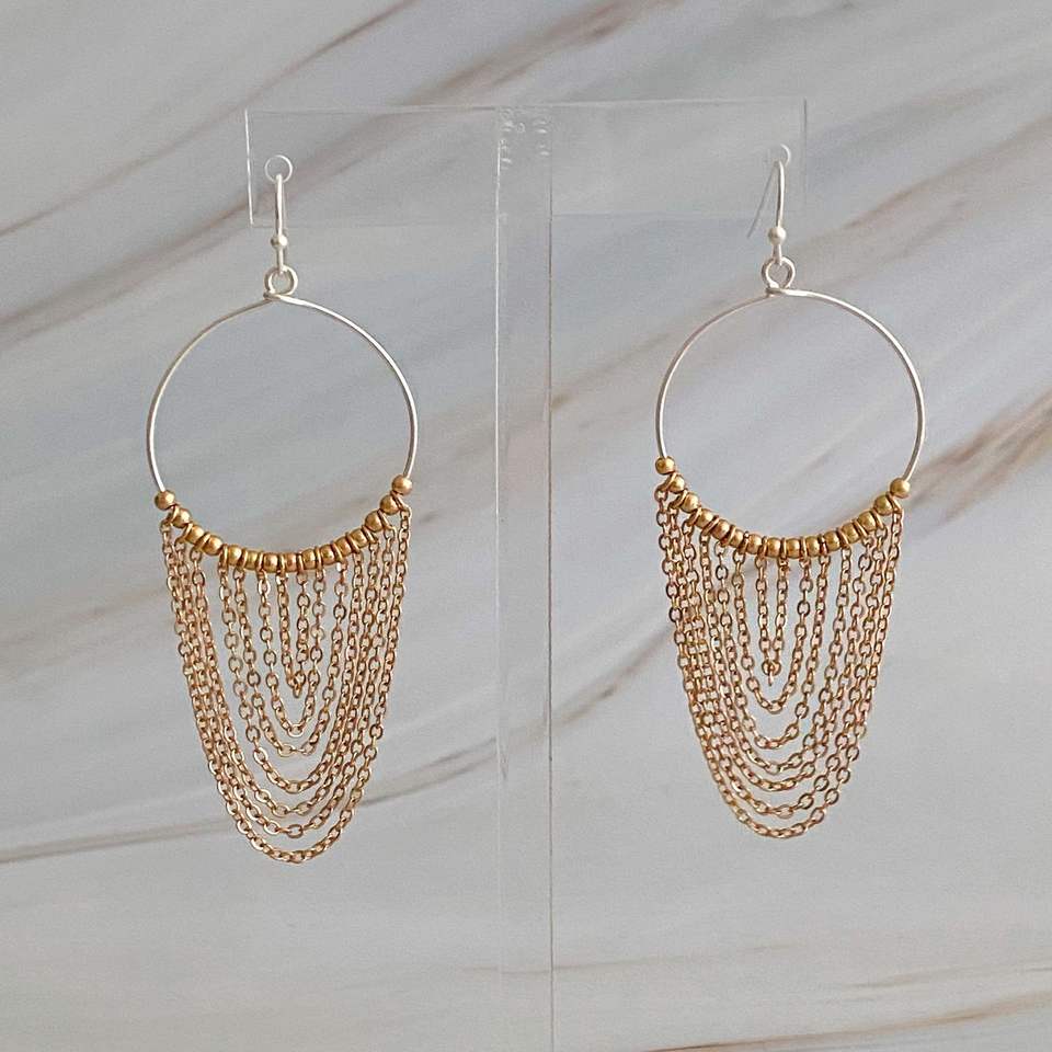 Orecchini Pendenti a Catena Bicolore, Accessorio di Gioielleria alla Moda
