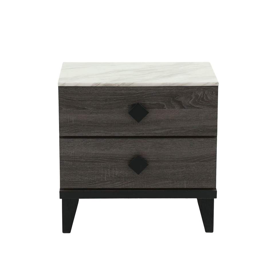 Two-Tone Finish Wooden Nightstand with 2 Drawers Foil Grey