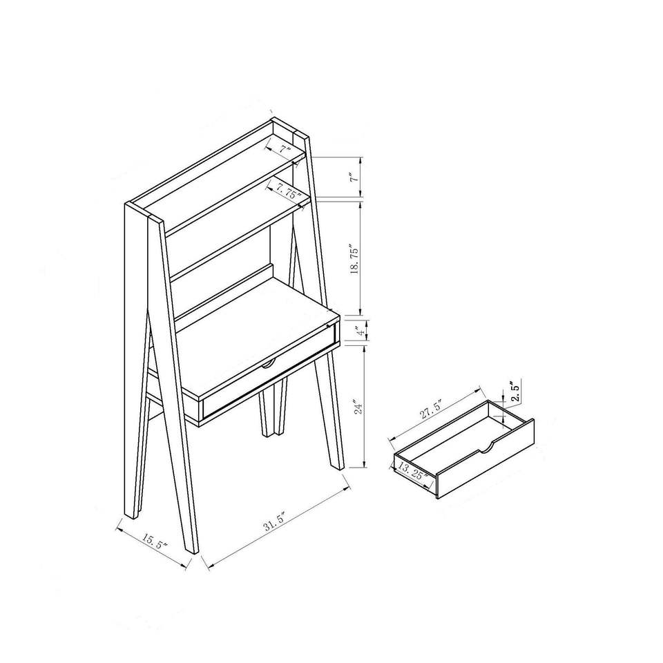 Two-Tone Home Office Study Desk with Drawer and Two Shelves White & Weathered White Ladder Desk for Computer Use