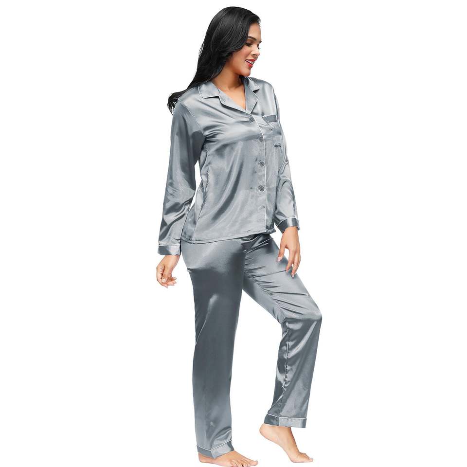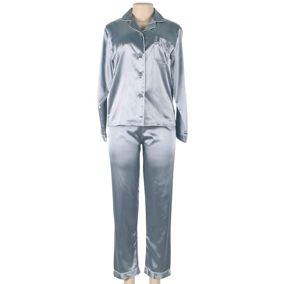 Two-piece set of classic silk sleepwear, long sleeves, gray, size L