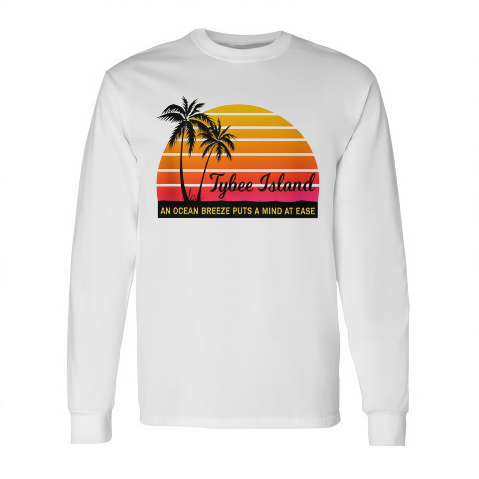 T-shirt a maniche lunghe Tybee Island con design Ocean Breeze, souvenir della spiaggia della Georgia