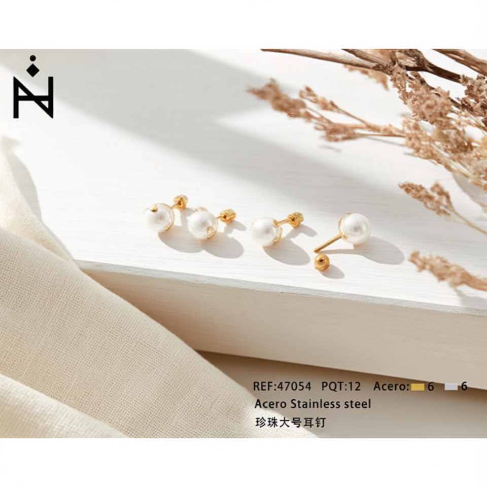 Orecchini a perla Tz di grandi dimensioni in acciaio inossidabile con perla sintetica placcata oro, gioielli minimalisti da donna