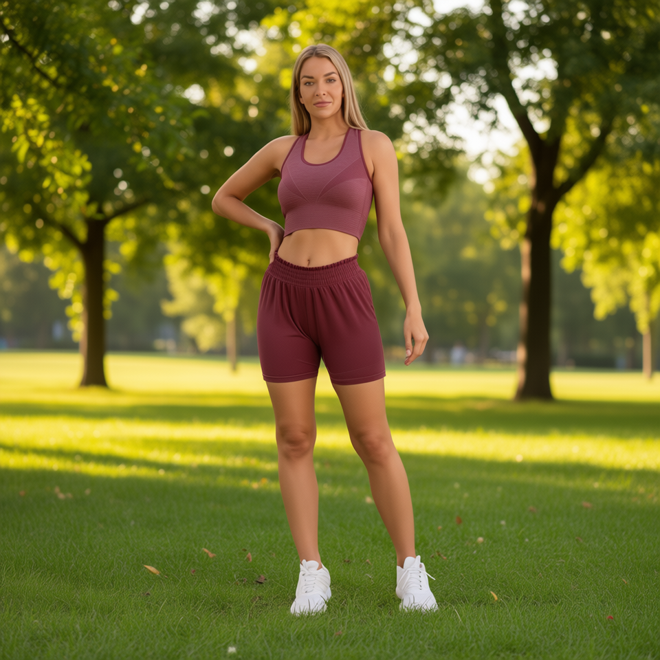 Tz396 Pantaloncini da Yoga Aderenti da Donna in Tinta Unita con Elastico in Vita in Poliestere Abbigliamento Sportivo