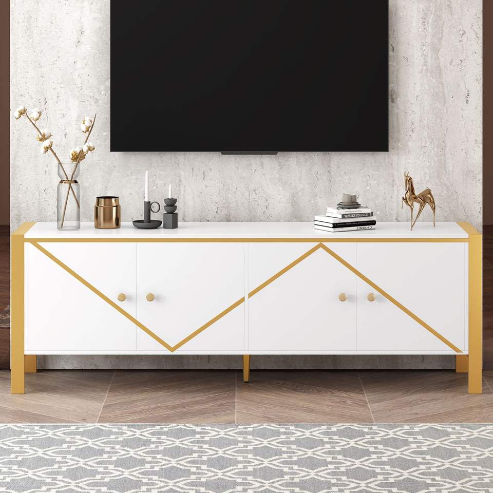 U-Can 70.9 ''moderno Minimalist TV Stand Entertainment Center Media Console Cabinet 2 armadi spaziosi per TV 75 pollici per