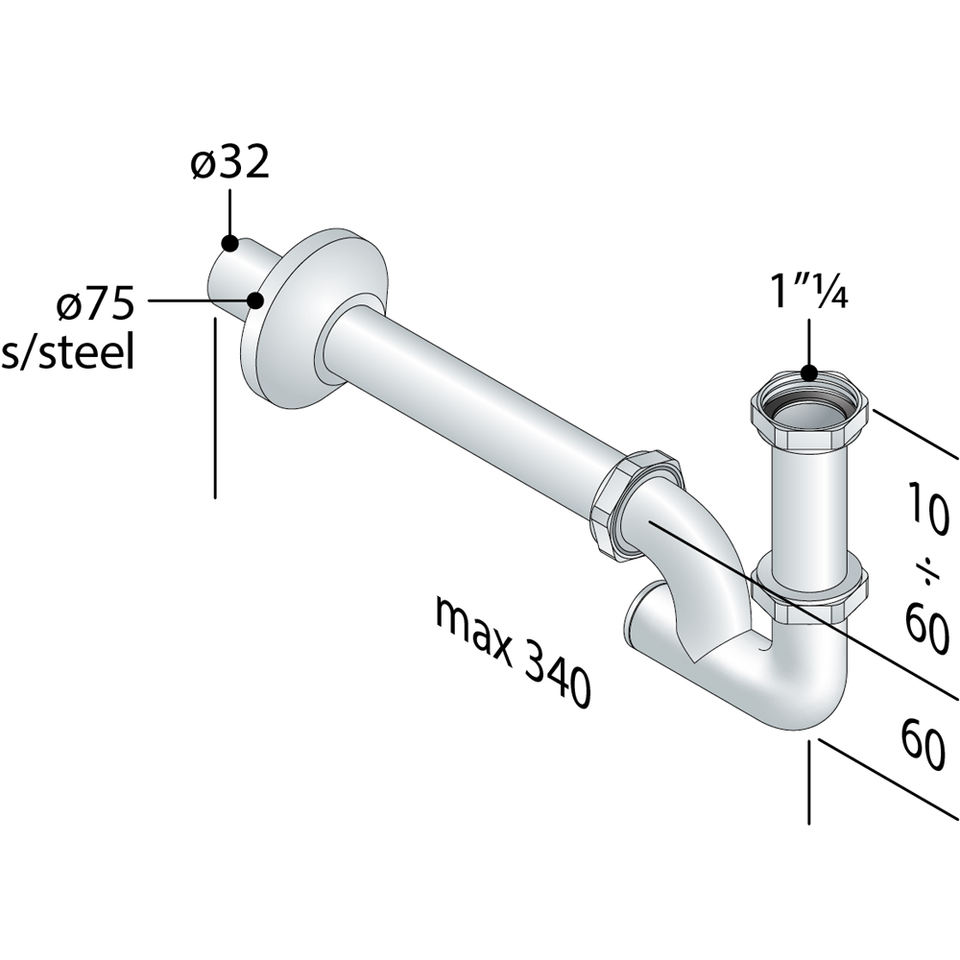 Sifone a U per Lavabo e Bidet con Ispezione Posteriore 'Europa' Tea 1\"1/4-32 X 250 mm, Trappole Idrauliche