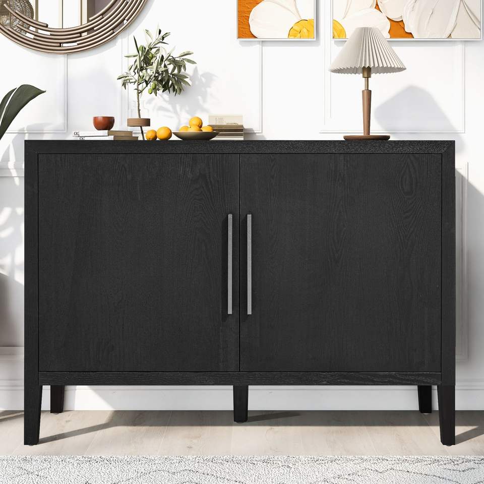 U-Style Wooden Sideboard Cabinet with 2 Metal Handles and 2 Doors for Hallway Entryway or Living Room