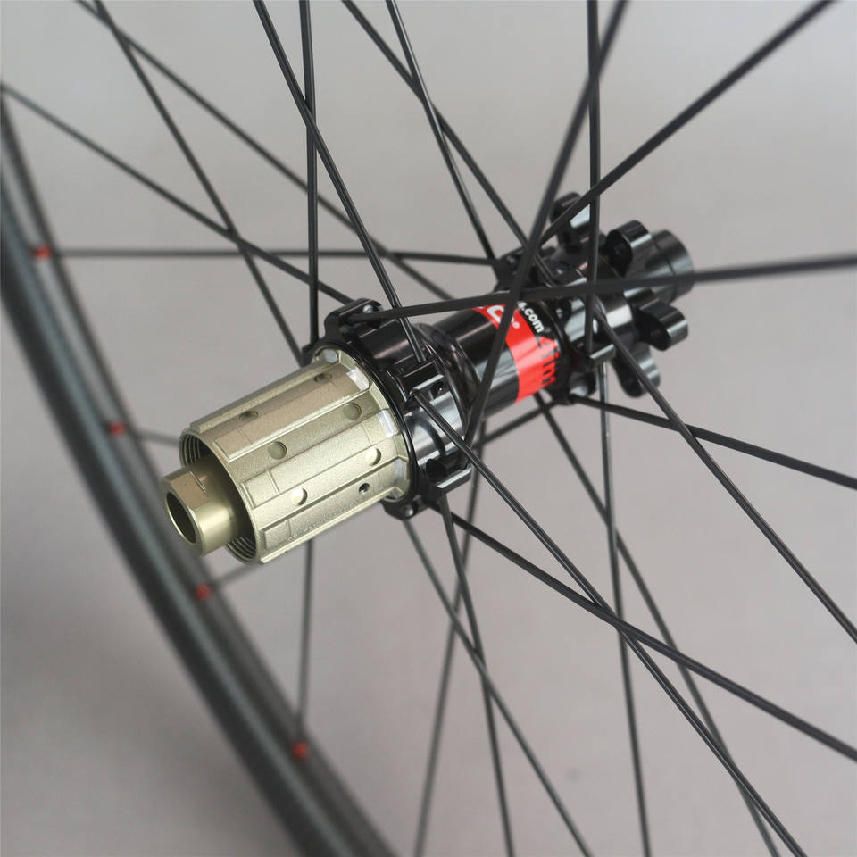 Set Ruote da Strada UCI Disc 24-28H 25X50mm Cerchio in Carbonio Clincher 3k Stwill con Mozzo D411/D412 Nippli Esterni Rossi DT-50c