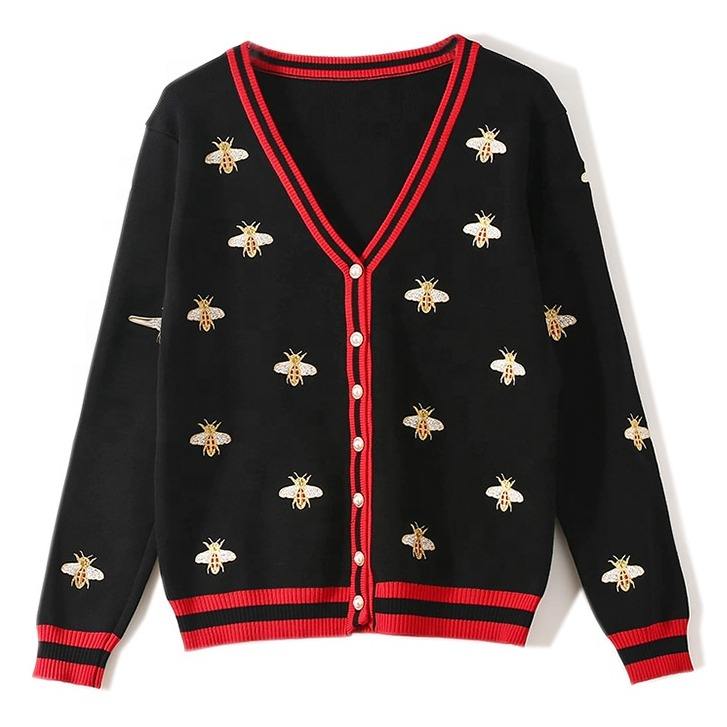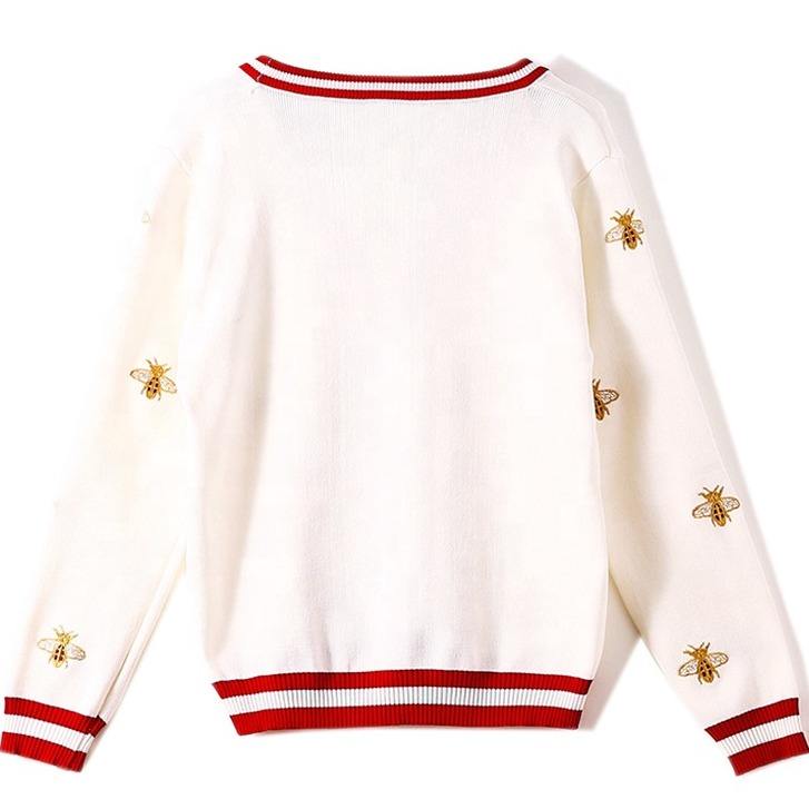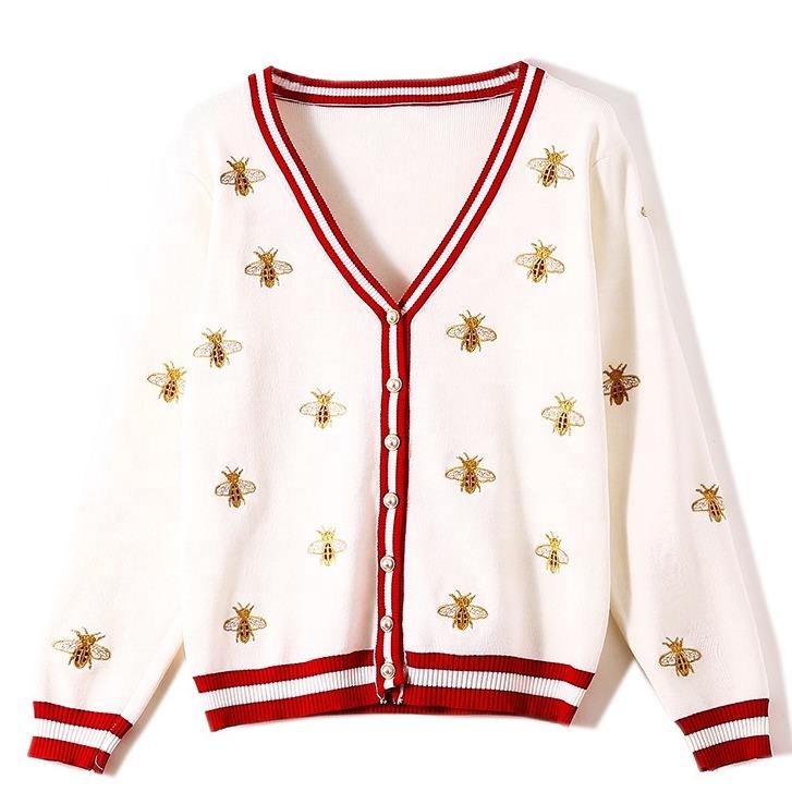 Maglioni lavorati a maglia con bottoni a contrasto monopetto manica lunga Cardigan ricamato ape stilista di alta qualità UG
