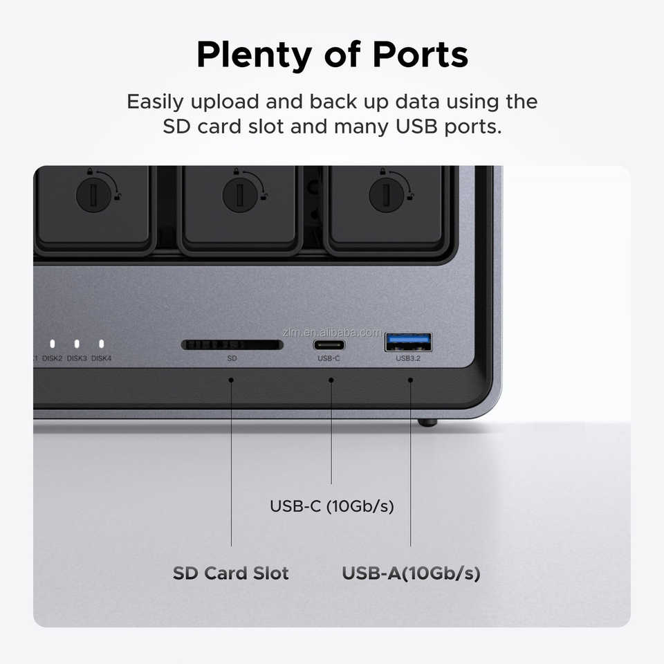 Maximum Storage:136TB (4x 30TB + 2x 8TB)