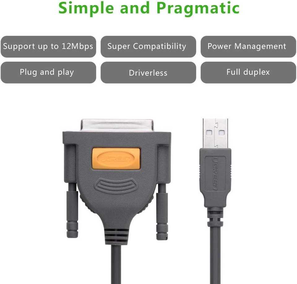 Cavo Adattatore UGREEN da USB a DB25 per Stampante Parallela, Connettore Maschio-Femmina, Convertitore IEEE 1284 per PC Desktop e Laptop