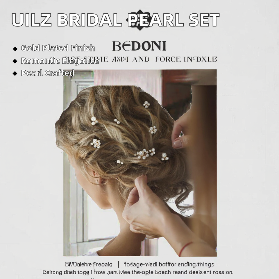 UILZ 9-Piece Gold Plated Bridal Pearl Hair Clip Set Irregular Pearl Hairpins for Wedding Hairstyles for Bride and Bridesmaids