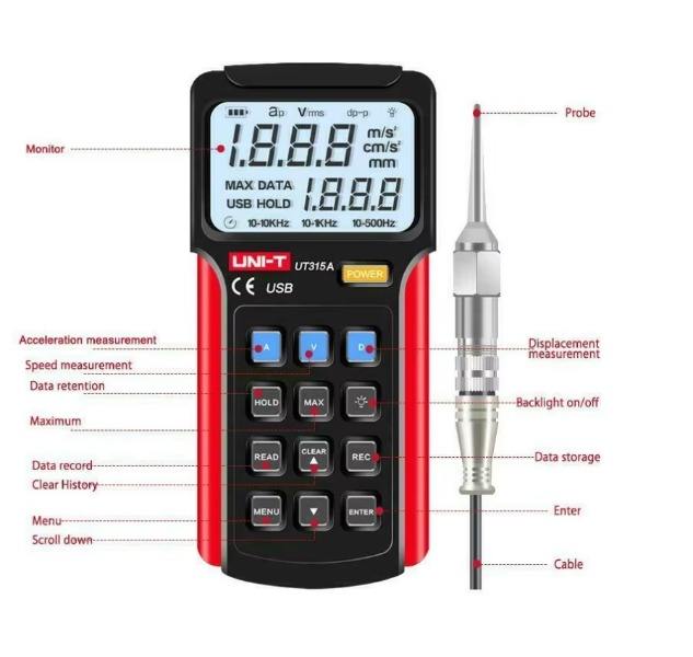 Tester di Vibrazioni Portatile UNI-T UT315A, Vibrometro con Separazione Velocità/Deformazione