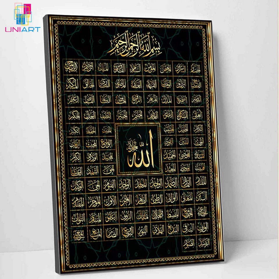 UNIART 99 nomi di Allah musulmana calligrafia islamica tela arte oro pittura poster stampe arte parete arte decorazione della moschea