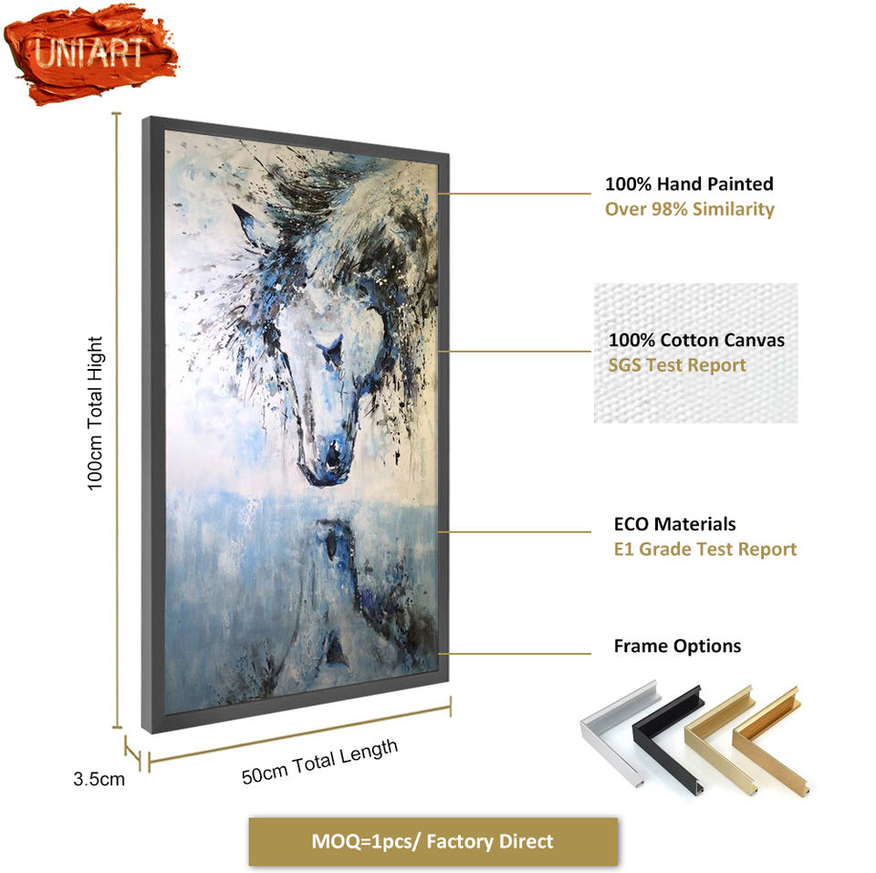 UNIART Custom Made White Horse Acrylic Oil Painting on Canvas Pure Hand Painted Impressionism Oil Painting Wall Art for Gallery