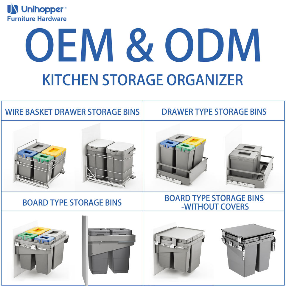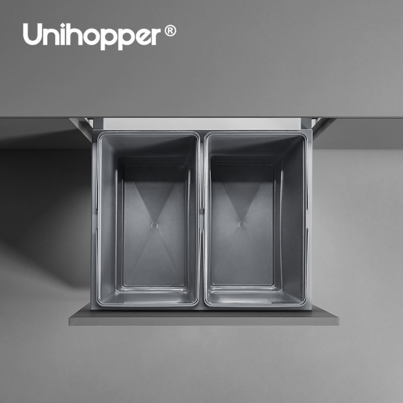 Contenitore Estraibile per Rifiuti UNIHOPPER, Doppio Bidone in Plastica per Riciclo, Cestino Integrato per Cucina