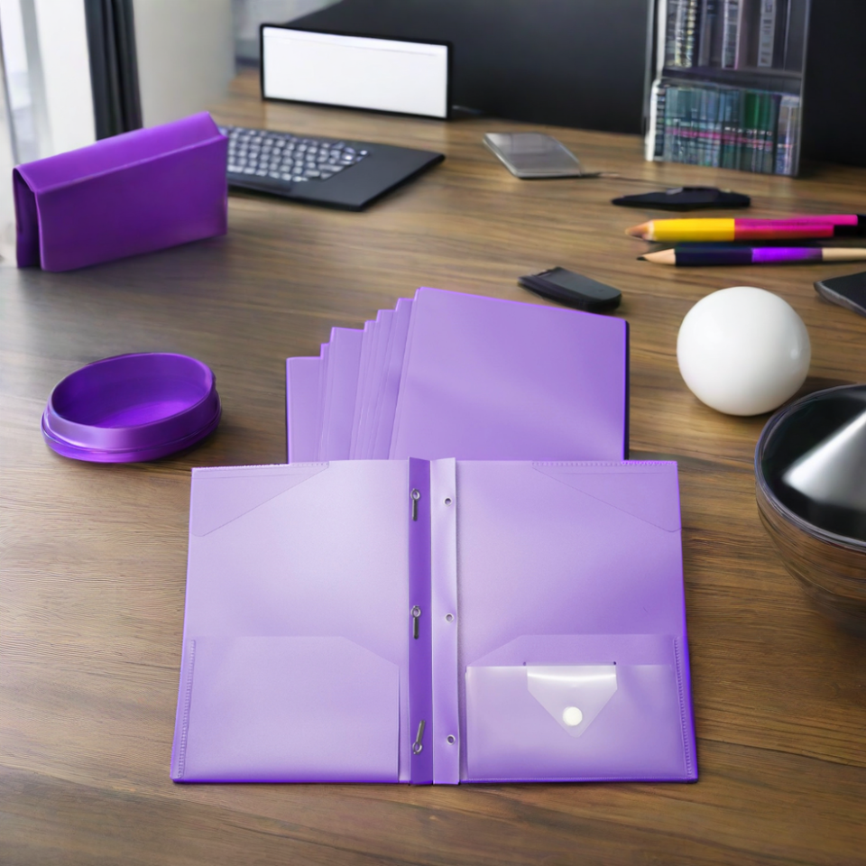 Cartella Portadocumenti Formato A4 Viola con 3 Rilegature Metalliche, Impermeabile in PP, Colore Personalizzabile, Promozione di Fabbrica UNUS