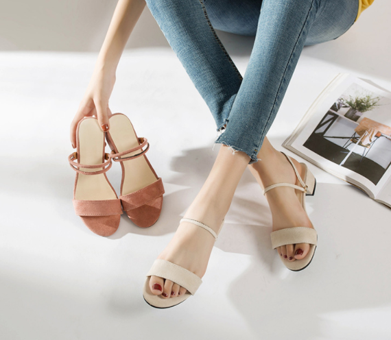 Sandali Estivi da Donna UP-0988J con Tacco Basso e Punta Aperta, Stile Coreano