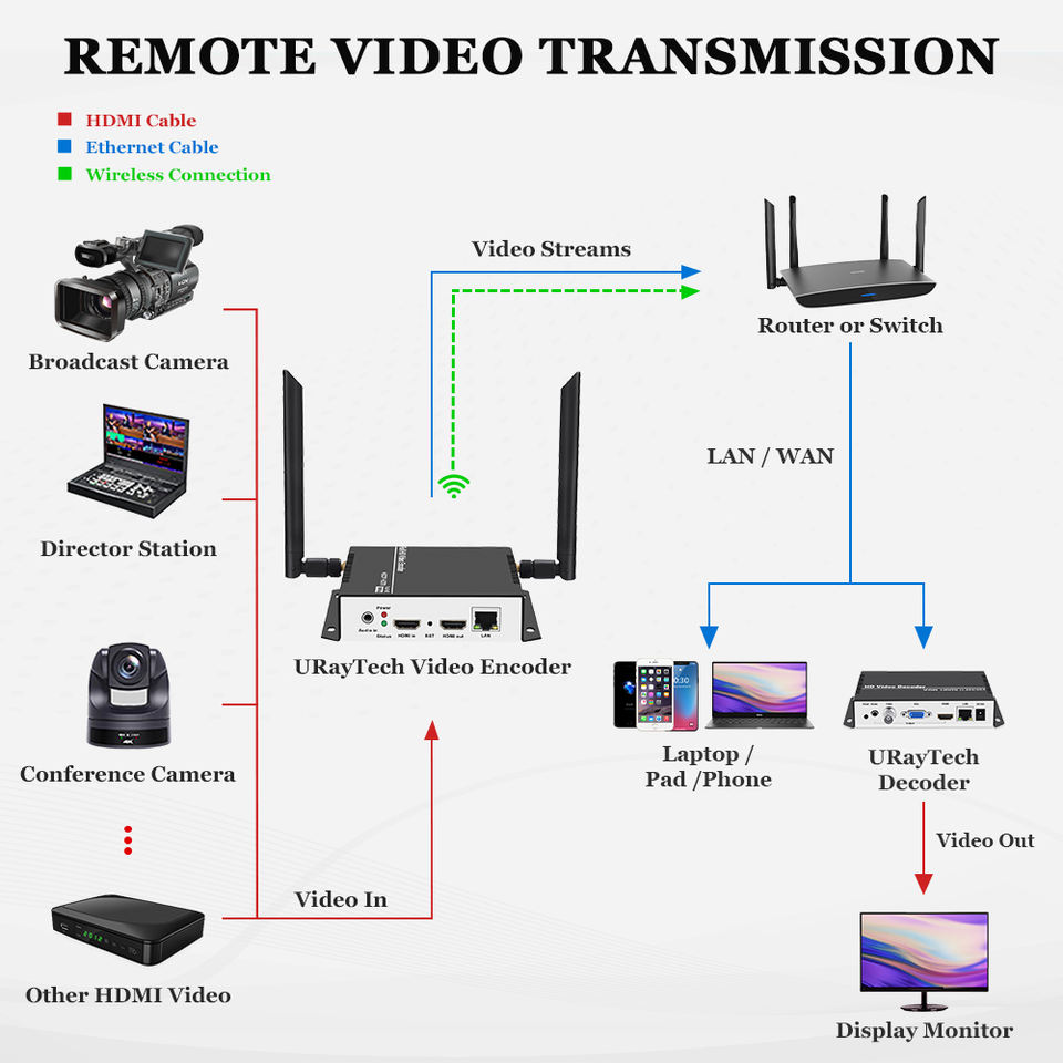 Encoder Streaming Wireless URayTech HEVC H.265 HDMI a SRT RTSP RTMP HTTP, da Video HD H265 H.264 a IP Stream, IPTV WIFI