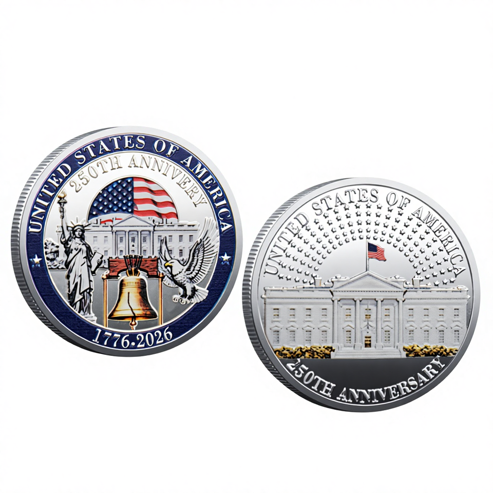 Moneta commemorativa del 250° anniversario dell'indipendenza degli Stati Uniti, Libertà e Aquila, Moneta rotonda in ferro della Casa Bianca