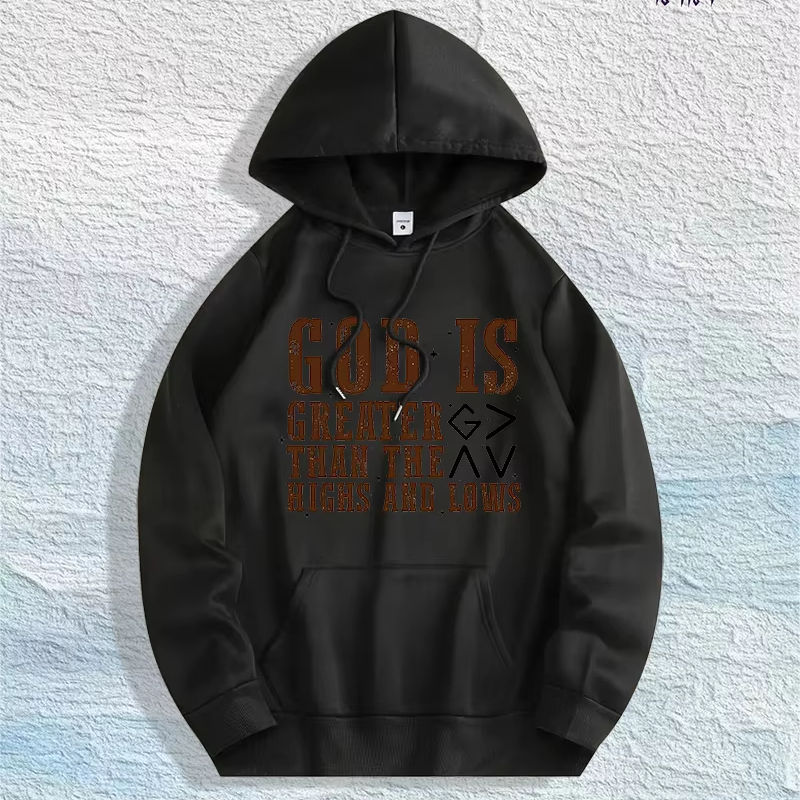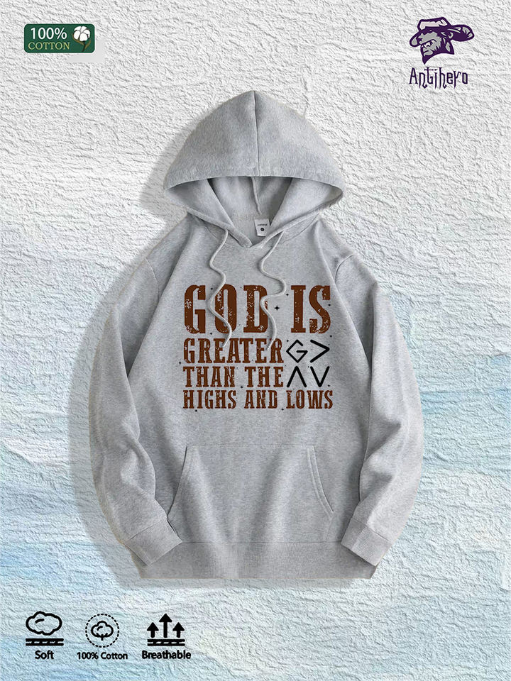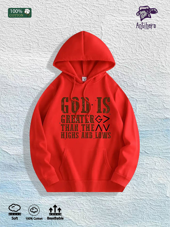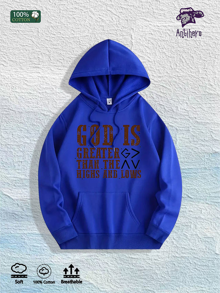 Magazzino Locale USA: Felpa con Cappuccio Religiosa 100% Cotone 'Dio è Più Grande delle Altezze e delle Bassezze', 7 Colori