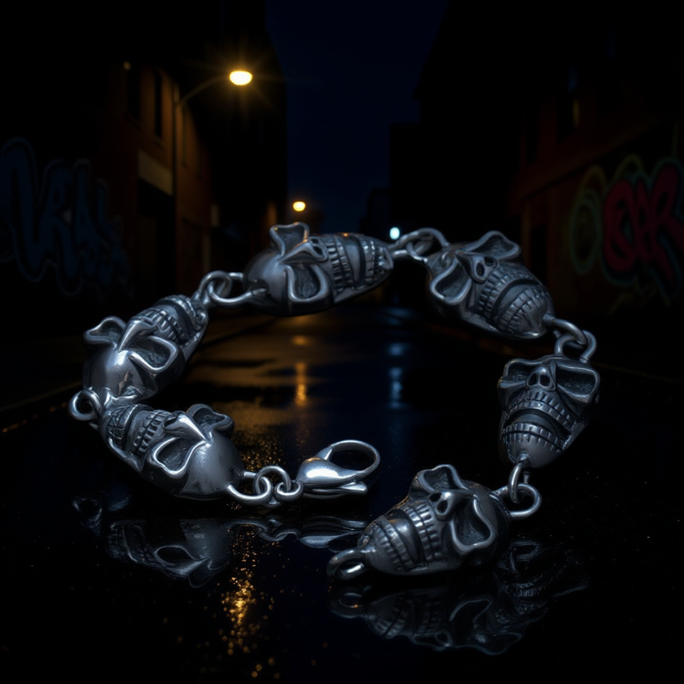 Bracciale da uomo in acciaio inossidabile color argento con teschio da motociclista, modello SL02, alla moda, geometrico, religioso, placcato oro, in titanio - Venditore USA