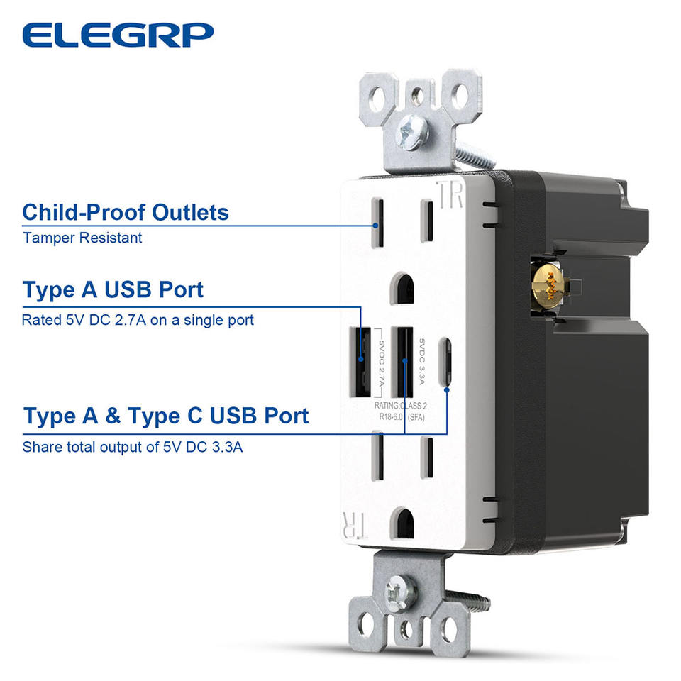 US Stock 6.0A 30W presa elettrica a muro con porte USB C UL Listed FCC tipo c presa per caricabatterie iphone 3 porte presa a muro