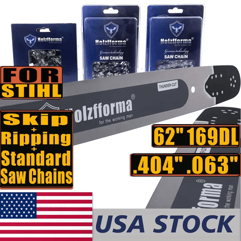 Disponibilità USA: Barra guida solida da 62 pollici per motosega, passo .404, spessore .063, 169 maglie di trasmissione, per motoseghe Full Chisel e Skip Ripping, modello ST 088 MS880