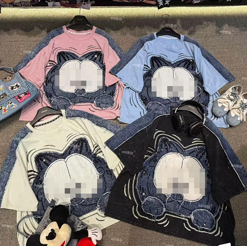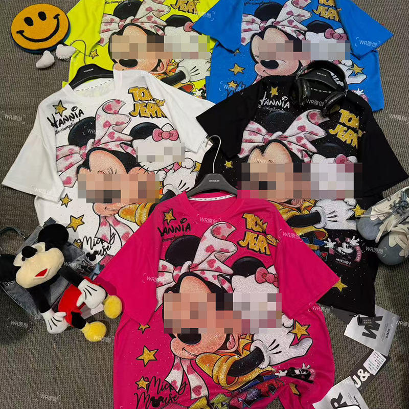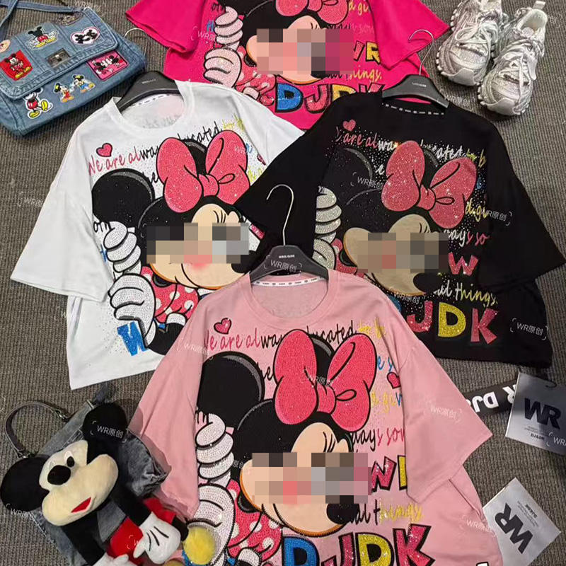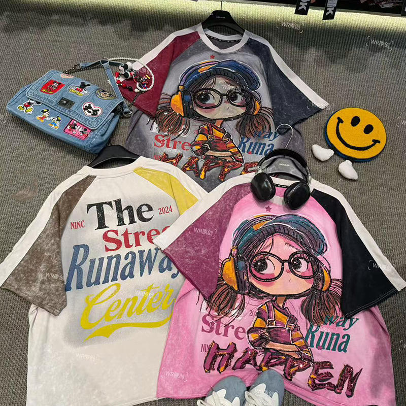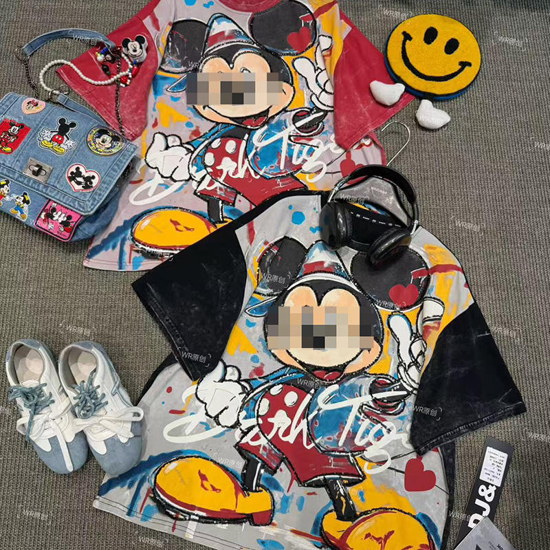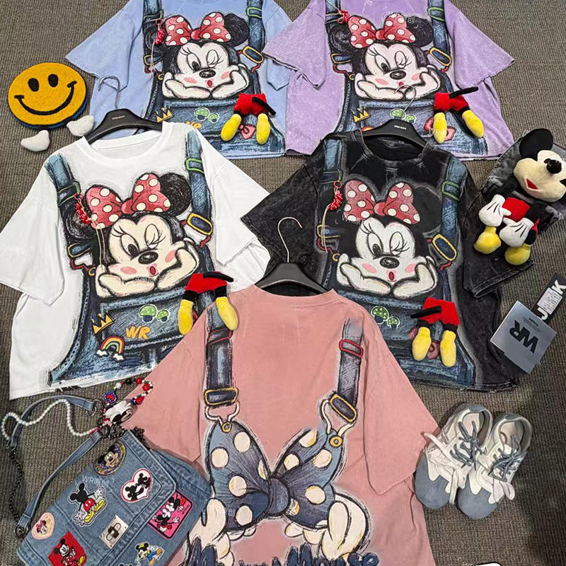 T-Shirt in Cotone con Logo Personalizzato, Design Stampato con Personaggio Cartoon Divertente, Colletto a Fiocco, Vestibilità Comoda per Eventi